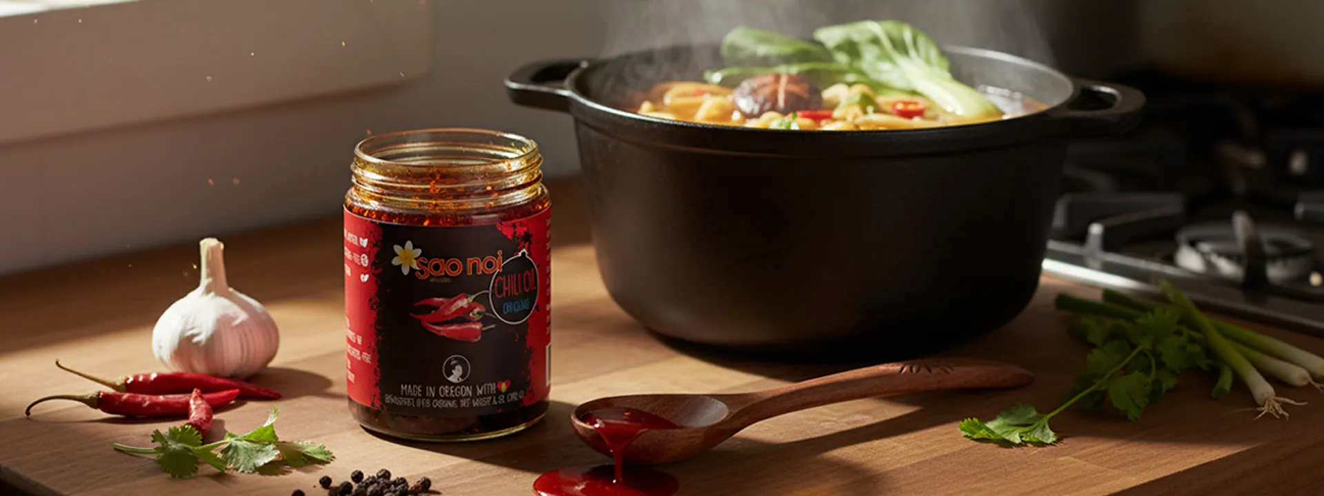 Not all chili oils deliver the same experience. The best versions bring layers of flavor beyond just heat. Sao Noi Original Chili Oil combines crispy garlic bits, caramelized onions, Thai chili peppers, and rice bran oil. It’s gluten-free, preservative-free, and sits at a 4/5 heat level spicy enough to be interesting without overwhelming your taste buds.