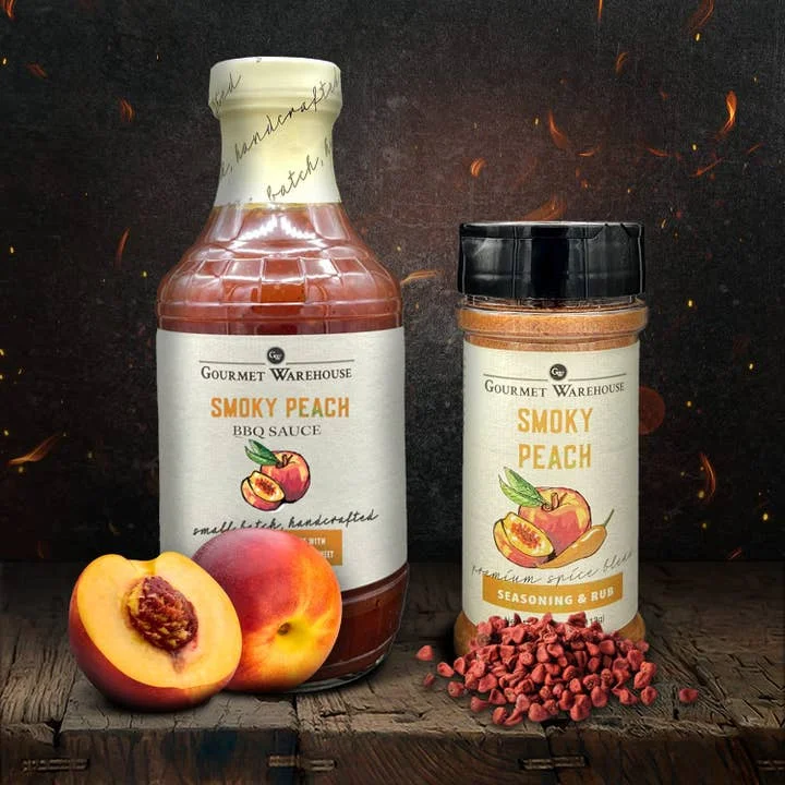 Smoky Peach seasoning & rub is the perfect mixture of sweet peaches, brown sugar and savory smoke. Gourmet Warehouse seasonings and rubs are crafted by hand with a premium blend of curated spices. Our spice blends compliment all of your favorite dishes by adding maximum flavor, aromatics and texture.