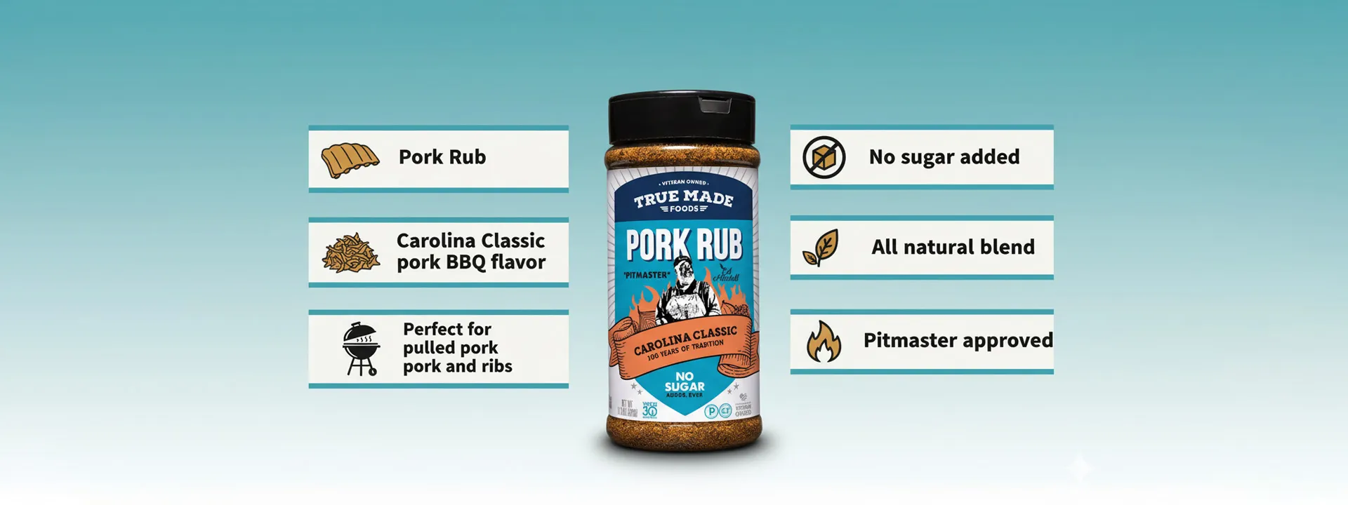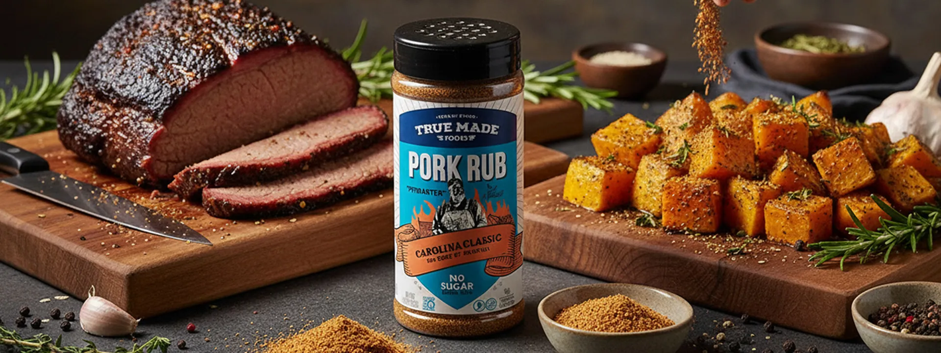 True Made Foods Carolina BBQ Pork Rub reminds me of his approach. When I first tested it on a pork shoulder, what stood out wasn’t complexity it was balance. The sugar content sits in that narrow window where you get caramelization without burning, even during 12-hour cooks.